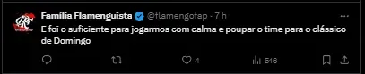 O comandante deixou claro que os dois primeiros gols foram erros da sua equipe que o Mengão se aproveitou. “Temos que melhorar muitas coisas, o maior erro que cometemos foi marcar dois gols nós mesmos. Foram erros nossos que o Flamengo aproveitou, que nos levaram a ter um pouco mais de insegurança e eles tiveram tranquilidade”, disse.