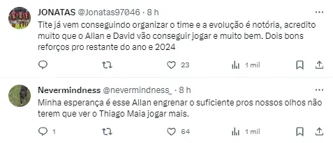Na época que a lesão de Allan foi constatada, a torcida do Flamengo levou um susto. Por ter pago quase R$ 50 milhões na compra do craque junto ao Atlético-MG, o Rubro-Negro foi acompanhado de perto no tratamento do atleta. Agora, os adeptos confiam no seu retorno.