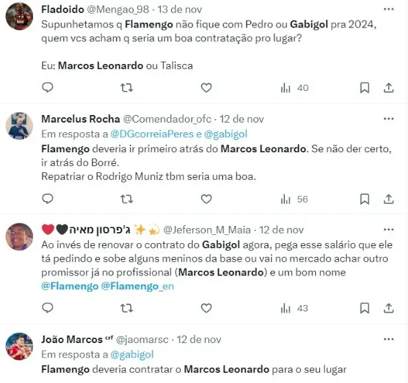 Opiniões da torcida do Flamengo sobre Marcos Leonardo
