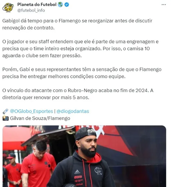 De acordo com informações do jornalista Diogo Dantas, do O Globo, porém, Gabi e seus representantes têm a sensação de que o Flamengo precisa lhe entregar melhores condições como equipe. O vínculo do atacante com o Rubro-Negro acaba no fim de 2024. A diretoria quer renovar por mais 5 anos.