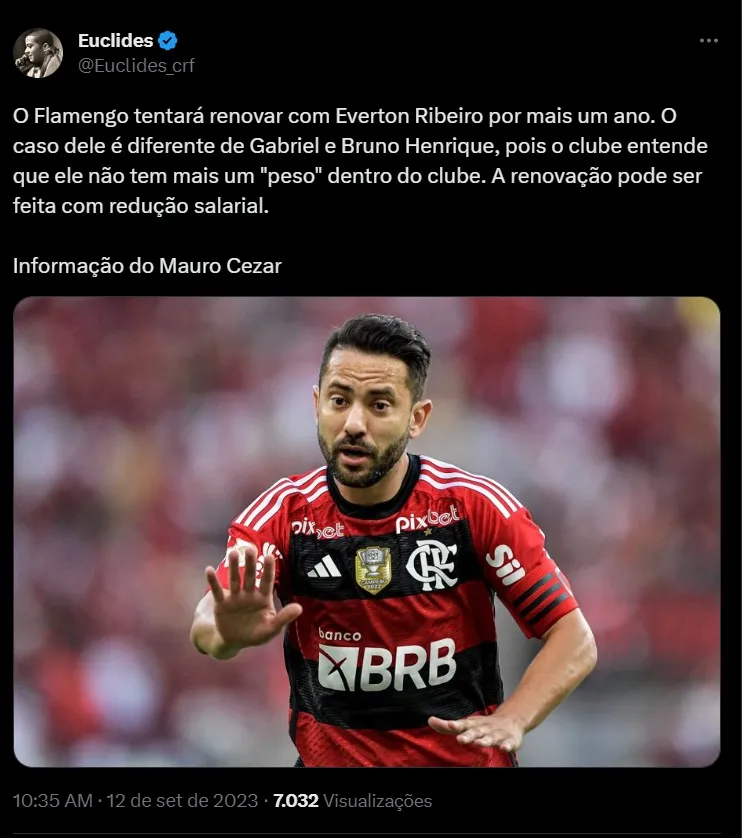 Como é o caso de Bruno Henrique, que tem vínculo até o fim do ano, e vem recebendo investidas de equipes rivais. Outro é Gabigol, que apesar de ter contrato até 2024, a diretoria quer evitar perdê-lo e pretende estender o vínculo por mais dois anos. Entretanto, um dos principais jogadores do meio campo, Everton Ribeiro, também está em processo de renovação, mas deve ocorrer de uma forma diferente dos demais.