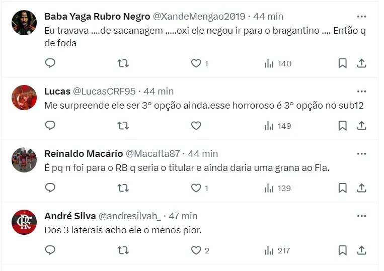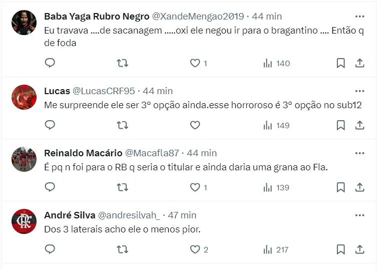 Como foi o caso de Matheuzinho, que antes da lesão que sofreu era o titular da posição, mas acabou perdendo espaço após o retorno. O comandante vem analisando as melhores opções para o elenco e atualmente não vê a cria da Gávea nessa situação.