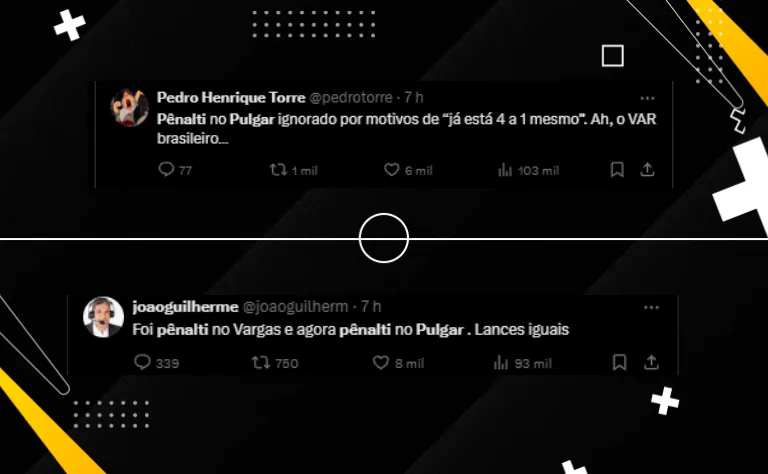 Ele destacou que no primeiro lance, na penalidade sofrida pelo chileno Vargas, o VAR chamou para revisar, mesmo com Allan tendo tocado a primeira bola. Por outro lado, Otávio que pegou só no pé de Pulgar, não foi dado.