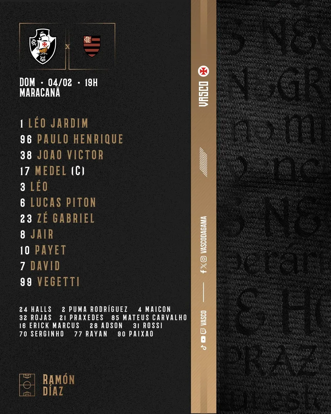 Agora, na quinta-feira (8), em jogo válido pela sexta rodada do Carioca, o Vasco enfrenta a equipe Audax às 21h15, no Estádio Arena da Amazônia, em Manaus.