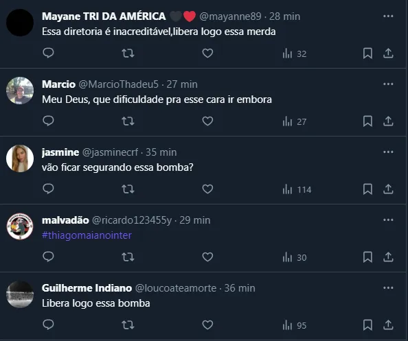Afinal, segundo o jornalista, uma pedida extra que não havia sido combinada travou as negociações do Internacional por Thiago Maia. Isto é, neste momento, as conversas estão paradas por conta desse “problema”.