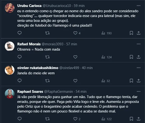 Além disso, o Flamengo está buscando outras opções para o seu plantel. Nomes como Matías Viña, Léo Ortiz, Juninho Capixaba e Evander estão sendo sondados, mas outro jogador apareceu: o lateral-esquerdo Alex Sandro.