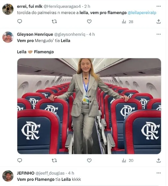 Dessa forma, uma enorme quantidade de flamenguistas passou a pedir que a milionária abandone os paulistas e venha ser substituta de Landim no cargo. Resta claro que as chances disso acontecer são praticamente zero, mas só comprova o quanto o trabalho da atual diretoria vem desagradando todo mundo extracampo.