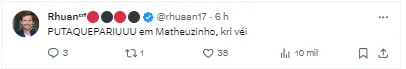 “Matheuzinho pode acabar ficando no Flamengo e não se transferir nem para o Corinthians e nem para o Botafogo. Os dois clubes fizeram a mesma proposta ao Fla pelo lateral”, informou o colega.