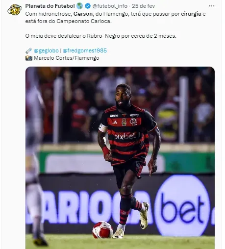 Para se ter ideia, de acordo com informações apuradas pelo jornalista Venê Casagrande, o volante ficará longe dos gramados e afastado do Flamengo por um longo tempo.