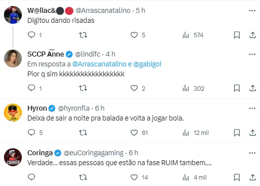 Muitos torcedores comentaram na nova publicação de Gabigol, e não gostaram do comentário do atacante. “Digitou dando risadas”. Outros frisaram que o camisa 10 está fora de forma.