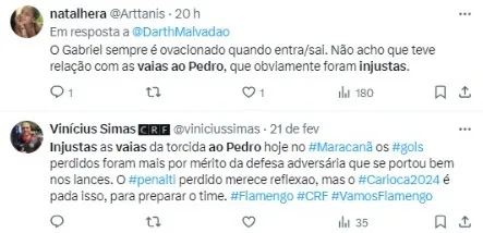 Depois da goleada do Flamengo diante do Boavista por 4 a 0, na última terça-feira (20), pela nona rodada do Campeonato Carioca, a torcida não ficou satisfeita com todos os jogadores, tanto que vaiou Pedro na saída de campo.