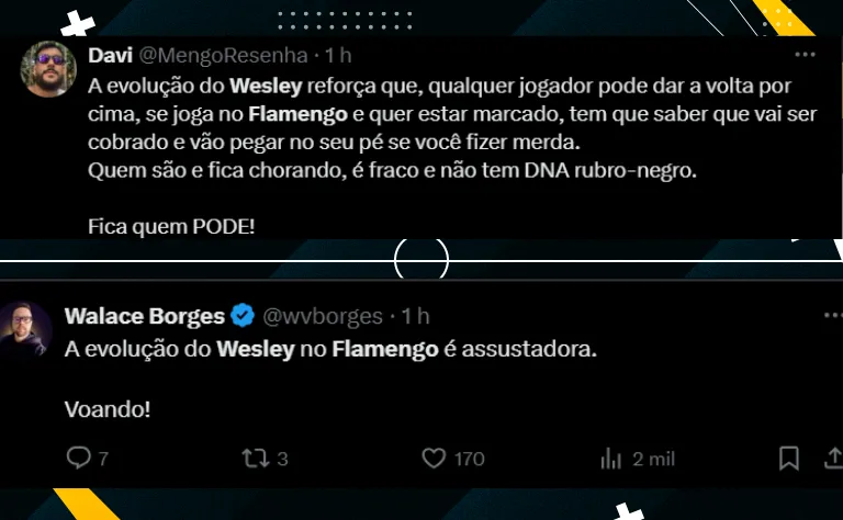 O Wesley vem mostrando a cada partida a sua importância em campo e, que cada vez mais a sua permanência no Flamengo vem ficando improvável, já que vem despertando o interesse de equipes do futebol internacional.