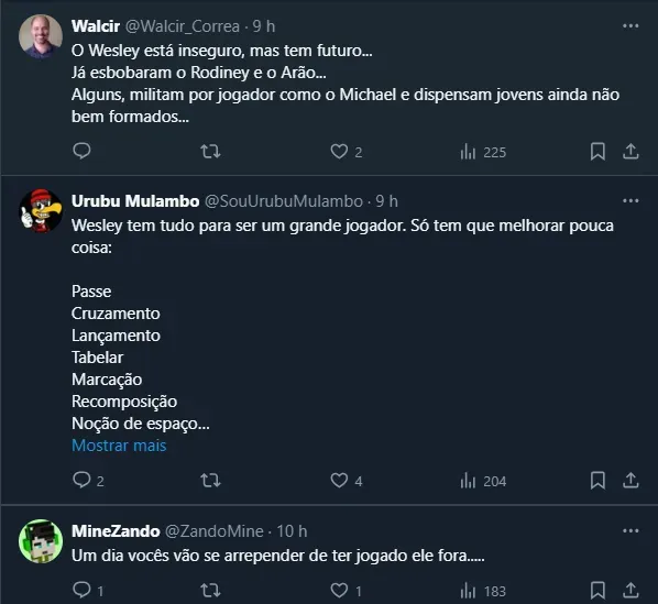 Torcida repercute situação de Wesley