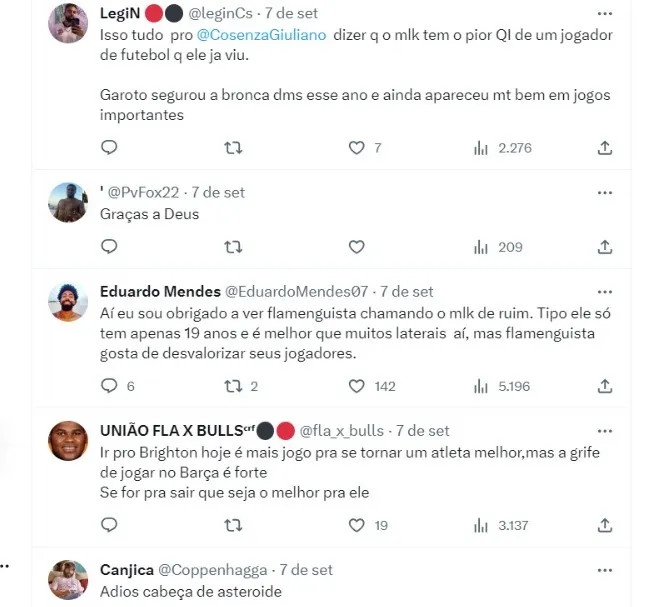 Wesley está valorizado e tem clubes europeus interessados em seu futebol. O Brighton é um deles. Outros times da Premier League também se aproximaram do atleta. O staff do lateral-direito tem a informação de que o Barcelona fará nova investida na janela de inverno da Europa.