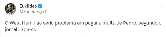 Tim Steidten, diretor esportivo do West Ham está no Brasil atrás de um centroavante nesta reta final de janela de transferências. Há conversas pelo Yuri Alberto , mas outros nomes estão na mira como o atacante Pedro, do Flamengo. Apesar disso, os ingleses querem pagar valores baixos pelos centroavantes.