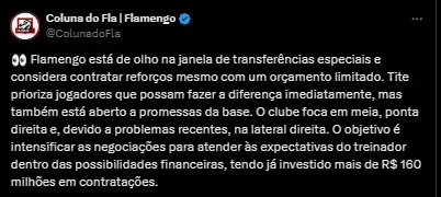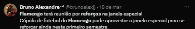 Nos bastidores, algumas informações dão conta de que o Fla pode ir ao mercado da bola na próxima janela de transferências, que será aberta em abril, em busca de um volante. Xeka poderia ser uma opção interessante por estar livre no mercado.