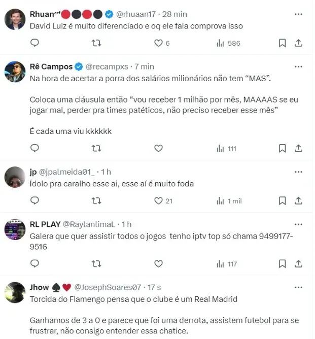 O jogador, inclusive, recebeu aplausos da torcida do Mais Querido após o jogo. Nesta quarta-feira (29), em entrevista para a Fla TV, David Luiz fez um forte desabado pelas críticas que vinha recebendo nos últimos meses.