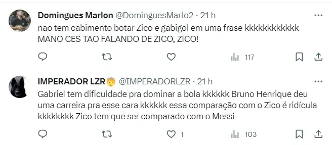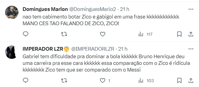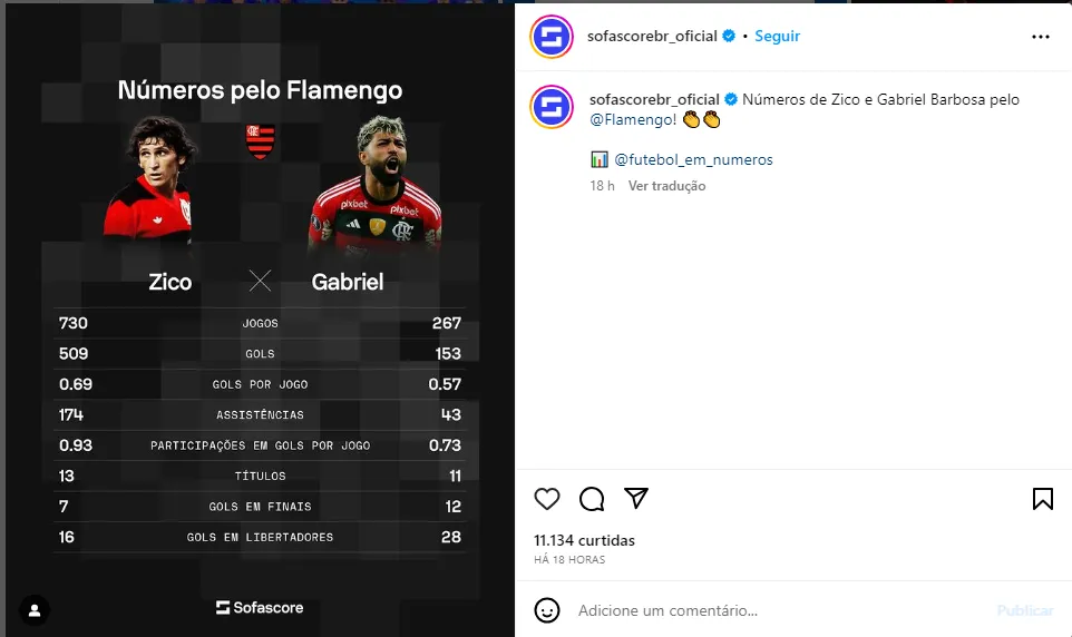 Diante da polêmica, o Sofascore, especializado em estatísticas do futebol, divulgou uma postagem comparativa entre os números de Zico e Gabigol no Flamengo. No quesito títulos e gols, Gabigol ainda precisa percorrer um longo caminho para chegar aos pés do Galinho.