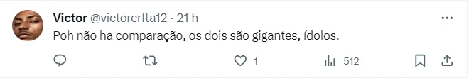 Abaixo, você pode conferir os números completos dos dois no Flamengo. Após a repercussão do caso, Gabigol fez uma postagem em suas redes sociais, escrevendo “Deus perdoe essas pessoas ruins”, em uma clara referência a frase que utilizava Adriano Imperador.