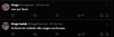 “Enfim, é mais um para esse elenco maravilhoso do Flamengo, mas vai ser muito bom para ele porque estava bem escondidinho, esquecido. Agora, é bom jogador”, encerrou.