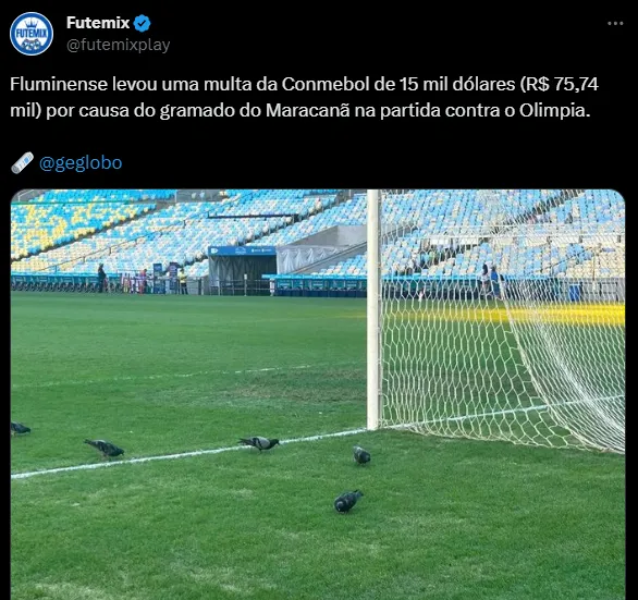 O estado do gramado do estádio é alvo de reclamações de diversos clubes. Até por isso, o Maraca vai ficar fechado entre 23 de outubro e 3 de novembro para a preservação da grama. Esse problema do campo, inclusive, rendeu uma punição ao Fluminense. O Tricolor das Laranjeiras foi multado em 15 mil dólares (R$ 75,74 mil na cotação desta quarta-feira) pela Conmebol pelo gramado ruim do palco.