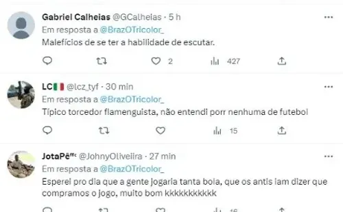 A torcida Tricolor não perdoou e tirou onda com a desconfiança do influenciador. Veja alguns comentários: