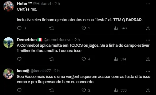 A Conmebol alertou o Fluminense de que, em caso de reincidência, os valores das multas poderão ser agravados, e novas sanções poderão ser aplicadas. Vale destacar que, apesar das punições, o Fluminense conseguiu vencer o Internacional por 2 a 1 na partida e garantiu sua vaga na final da Conmebol Libertadores.