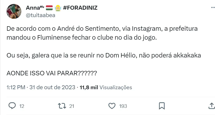 O prefeito Eduardo Paes também confirmou na última segunda-feira (30) que haverá um telão para a transmissão da final da Copa Libertadores na Cinelândia, voltada para a torcida do Fluminense.