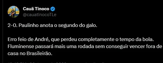 A derrota irritou os torcedores nas redes sociais, que ficaram assustados com mais uma atuação abaixo do Fluminense. Vale destacar que a equipe de Fernando Diniz terá a final da Libertadores no próximo sábado (04).