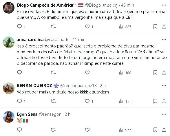 “Vai aqui o nosso repúdio. Temos muitas famílias envolvidas. No futebol, o melhor tem que vencer sem influência da arbitragem e hoje houve clara influência da arbitragem“, completou o treinador.