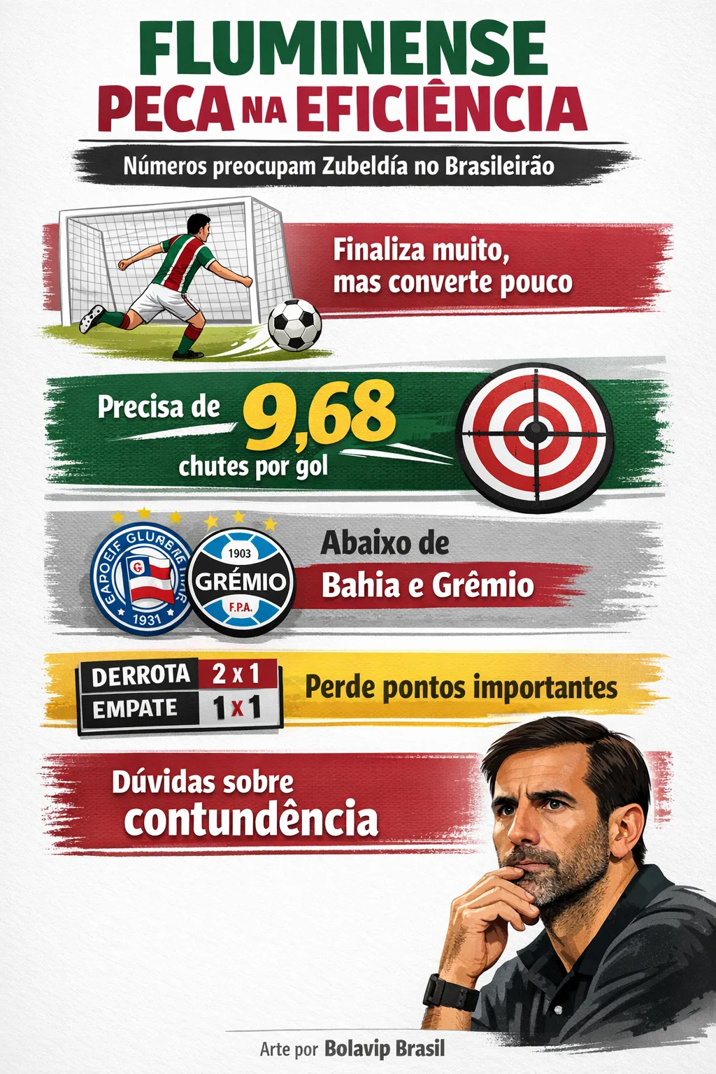 O Fluminense entrou na temporada com discurso de candidato — e elenco para sustentar a pretensão. Mas, quando o jogo aperta, a promessa não vira resultado. Falta algo básico no futebol de alto nível: transformar domínio eventual em vitória concreta. Zubeldía recorre a uma palavra que diz mais do que parece: “contundência”. Traduzindo: o time até chega, mas não resolve.