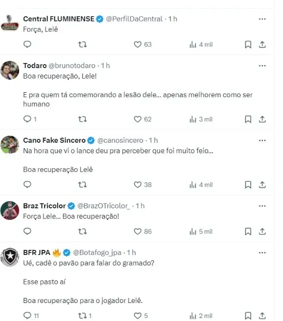 “INFORMAÇÃO: O atacante Lelê foi submetido a uma ressonância magnética e teve detectada a ruptura do ligamento cruzado anterior do joelho direito. Desejamos uma boa recuperação ao nosso camisa 18. Estamos com você, Guerreiro!“, escreveu o Fluminense nas redes sociais.