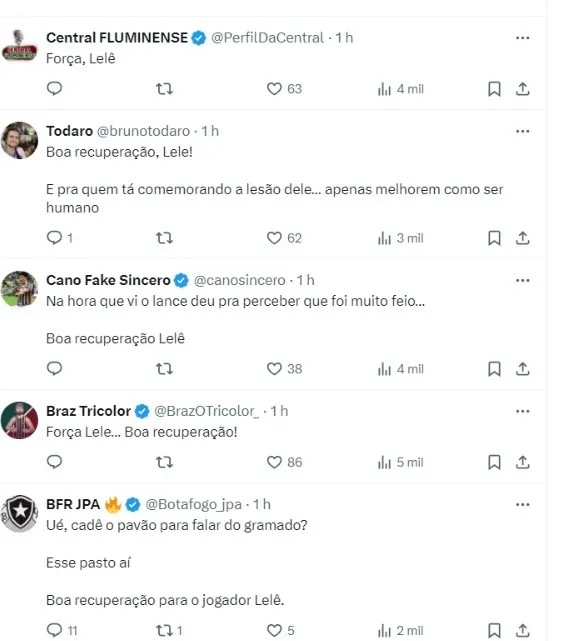 INFORMAÇÃO: O atacante Lelê foi submetido a uma ressonância magnética e teve detectada a ruptura do ligamento cruzado anterior do joelho direito. Desejamos uma boa recuperação ao nosso camisa 18. Estamos com você, Guerreiro!“, escreveu o Fluminense nas redes sociais.