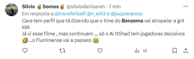 Quem por enquanto assiste todos esses confrontos e imagina um possível duelo com Benzema e o Al Ittihad é o Fluminense. O Flu conhecerá seu adversário das semifinais nesta sexta-feira (15), quando o Al-Ittihad enfrentará o Al Ahly.