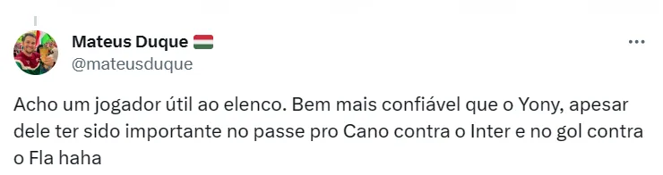 Porém, o Flu não terá vida fácil para tirar o jogador da Raposa, que tem preferência na sua compra junto ao Tombense. O Internacional, Corinthians, Grêmio e clubes do exterior querem o atleta.