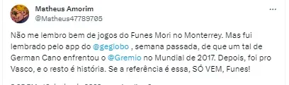 “Foi uma experiência linda, minha primeira vez no Mundial, mas perdemos para o Grêmio. Foi um momento especial, porque vivemos muitas coisas juntos como equipe. Foi muito legal”, revelou o argentino.