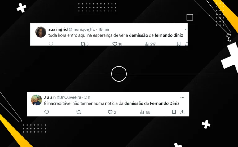 Além da insatisfação da torcida com o trabalho do treinador, a diretoria também não está contente com Fernando Diniz e pode trocar a comissão técnica. O portal RTI Esporte divulgou que os dirigentes avaliam quatro nomes no mercado.