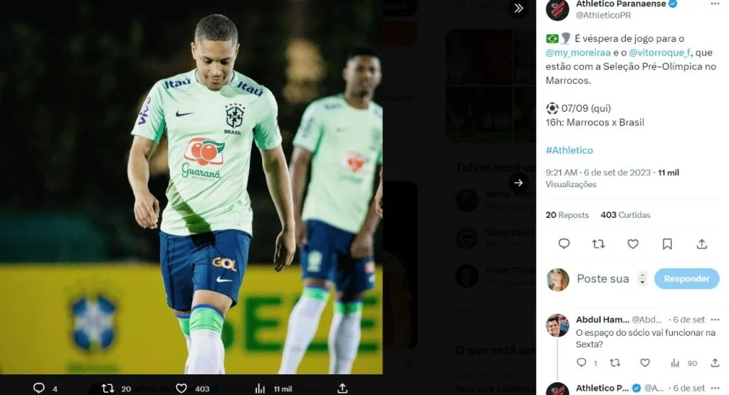 Com a informação do jornal 'Sport', Vitor Roque merecia ter sido convocado para a Seleção Brasileira principal?