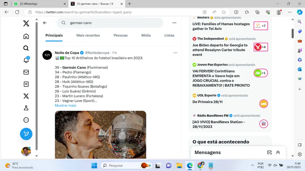 Só que Germán Cano não pensa assim. Segundo informações do jornal O Dia, o centroavante de 35 anos não pensa em ser poupado. Quer jogar as últimas três partidas do Flu no Brasileiro.