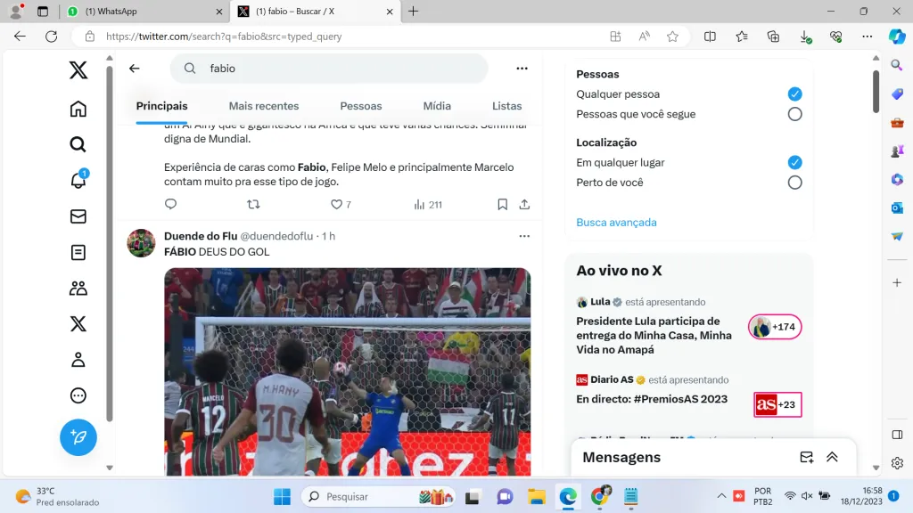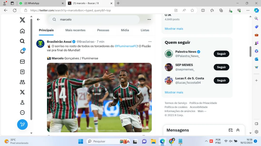 O Fluminense avançou à final do Mundial de Clubes da FIFA. Nesta segunda-feira (18), o time comandado por Fernando Diniz bateu o Al Ahly, do Egito, por 2 a 0, gols marcados por Jhon Arias e John Kennedy.