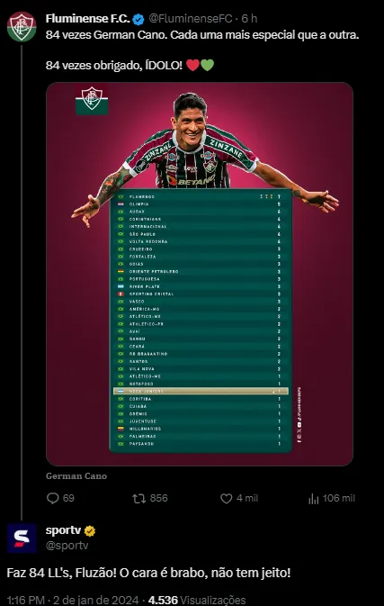 Cano, o artilheiro do Time de Guerreiros, foi peça-chave na inédita conquista da Libertadores, marcando 13 gols em 12 partidas. Sua atuação excepcional levou o Fluminense ao título inédito, consolidando-o como um dos maiores ídolos da história do clube.