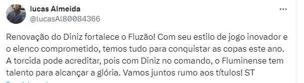 Diniz teve duas passagens no Fluminense como treinador e também já foi jogador do clube entre 2000 até 2003 e conquistou o Campeonato Carioca de 2002. Como técnico, ele ganhou destaque no cenário nacional na segunda passagem pelo Flu, que o levou inclusive a ser o comandante da Seleção Brasileira em 2023.