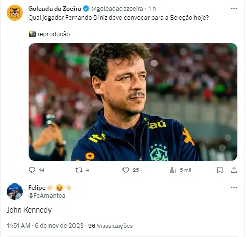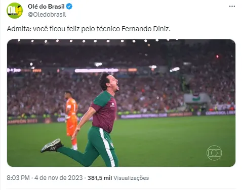 “Vai ser difícil ele ficar com a seleção e, ao mesmo tempo, o Flu. É uma coisa difícil você controlar, depois de um título como esse. Depois de título do Diniz, ele tem que ser o treinador da seleção. Eu não achava isso, mas dá um ‘gás’ para o cara”, afirmou o apresentador.