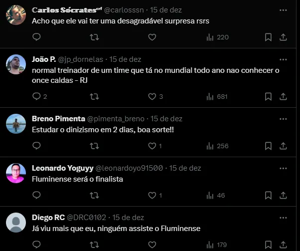 “A idade do jogador não tem nada a ver com o desempenho, e os atletas do Fluminense têm muita experiência e atuam de forma diferenciada. Mas a base é o desempenho em campo, seja você jovem ou experiente”, finalizou.