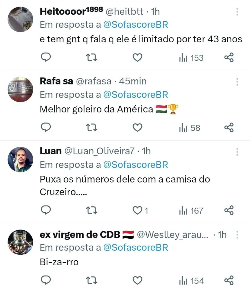 O papel de Fábio para o Fluminense neste mundial me faz recordar do insucesso do goleiro que fez história na Toca da Raposa, mas não conseguiu renovar devido à falta de acordo com Ronaldo fenômeno e a Saff do Cruzeiro.