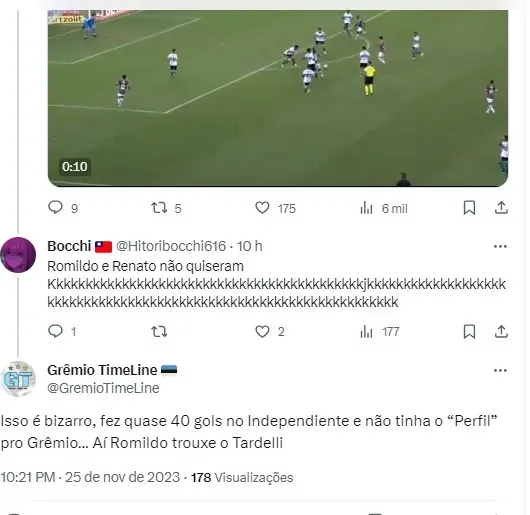 Na web, a torcida falou sobre: (SIC) “Germán Cano é rídiculo, o Renato e o Romildo não quiseram”; “Que absurdo que não trouxeram esse cara para o Grêmio”, foram alguns comentários.
