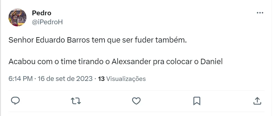 Nas redes sociais, os torcedores Tricolor das Laranjeiras criticaram as escolhas do auxiliar de Diniz e ficaram na bronca com o profissional. No segundo tempo, Marcelo foi para o meio-campo e Alexsander se deslocou para lateral. O Fluminense conseguiu ir em busca do empate duas vezes na etapa final.