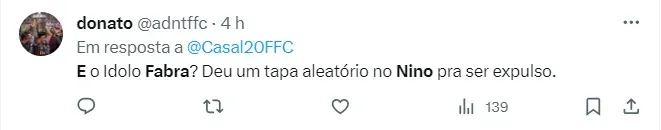 Em entrevista após a partida, Nino chegou até a comemorar a agressão sofrida: “Muitas vezes o jogo traz aspectos imprevisíveis. A gente conseguiu fazer o gol na prorrogação, John Kennedy expulso, graças a Deus o cara deu um tapa na minha cara e foi expulso também. Comemorei muito (risos). A gente sabia que precisava ser forte mentalmente para passar por esses momentos da melhor maneira possível”.