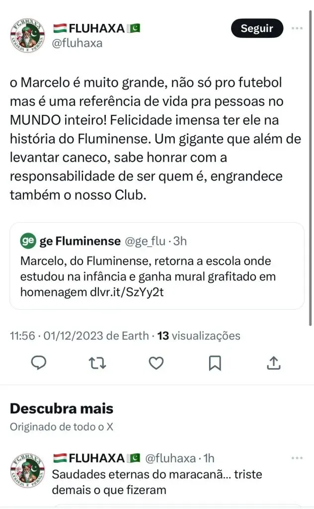 Campeão da Libertadores com o clube onde foi revelado, Marcelo afirmou em entrevista ao GE que agora quer ser campeão do Mundial com o Fluminense. O ala esquerdo avaliou que está realizando um sonho em disputar um torneio tão importante com a camisa do time carioca.