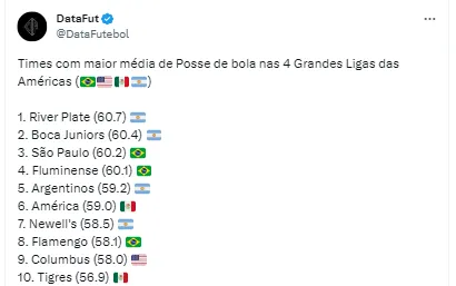 Segundo a pesquisa, o Tricolor carioca aparece como o quarto clube com a maior posse de bola entre as quatro maiores ligas da América. Foi considerado os campeonatos da Argentina, Estados Unidos, México e Brasil. A equipe possui uma média de 60.1%, que resulta em constante posse de bola na maioria dos jogos.